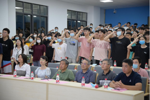 紧接着,由新生代表莫方宇同学带领全体新生进行宣誓,同学们紧握右拳,庄严宣誓,以整齐洪亮的声音,慷慨激昂的情绪进行宣誓。希望同学们能够牢记誓词,用行动践行自己的誓言。