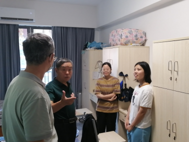 又是一年金秋开学季,为深入了解2020级专升本新生入学后的学习生活状况,帮助新生更快、更好地适应新环境,2022年9月5日下午,威廉希尔中文网站院长李招忠、副院长秦陇一、学生工作办公室主任陈纯华以及各位辅导员一起走访了新生宿舍。