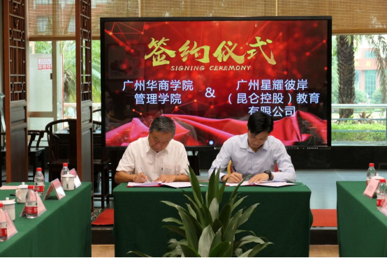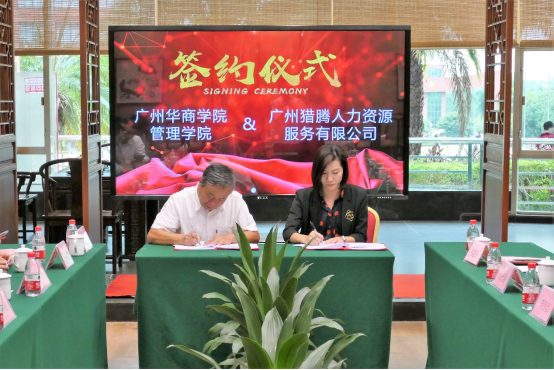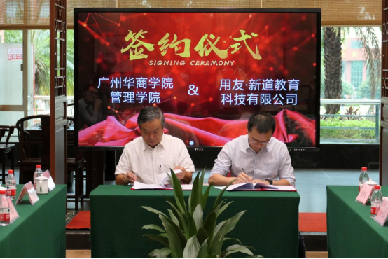 参加签约仪式的有:副校长张捷教授、威廉希尔中文网站院长李招忠教授、副院长秦陇一教授、院长助理袁仕海副教授、校产教融合办主任唐显锋主任、产教融合专员曾惠玲老师、创业创新秘书杨惠茜老师以及四家签约企业的代表。四家企业的代表分别是:用友•新道科技股份有限公司总经理黄堪敬一行、广州猎腾人力资源服务有限公司刘艳总经理一行、深圳孵创兴华专利代理有限公司总经理林光明一行、广州星耀彼岸(昆仑控股)教育有限公司华南区总监肖训智一行。