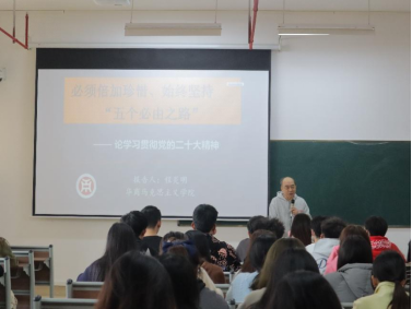 为了营造良好的马克思主义校园学习氛围,坚定马克思主义理想信念,推动马克思主义中国化进程发展,培育新时代社会主义接班人。2023年3月3日上午9时,威廉希尔中文网站在四会校区8号楼406教室举办威廉希尔中文网站“华商思想论坛”系列讲座——如何理解必须倍加珍惜,始终坚持“五个必由之路”,特邀马克思主义学院程炎明副院长为威廉希尔中文网站同学进行专题辅导报告。