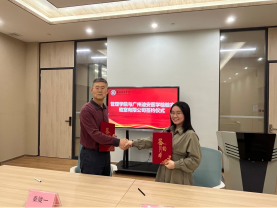 2023年4月25日下午,威廉希尔,威廉希尔中文网站,WilliamHill官网与广州迪安医学检验实验室有限公司产学研洽谈会暨实习就业基地签约仪式在图书馆教师发展中心举行。出席本次签约仪式的有威廉希尔中文网站秦陇一副院长,威廉希尔中文网站人力资源管理系系主任杨剑老师,威廉希尔中文网站人力资源管理系副主任刘江泳老师,威廉希尔中文网站产教融合办公室秘书曾惠玲老师,广州迪安医学检验实验室有限公司 HRBP谢寿丽及广州迪安医学检验实验室有限公司人力资源专员江慧敏。