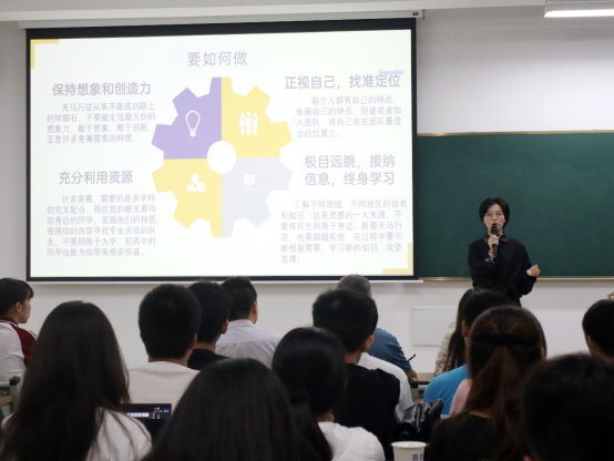 会议的最后是答疑解惑环节,大一新生们提出了自己在学习方面的各种困难和疑惑,老生代表们耐心地回应了大家的疑惑,并提出了宝贵的建议。