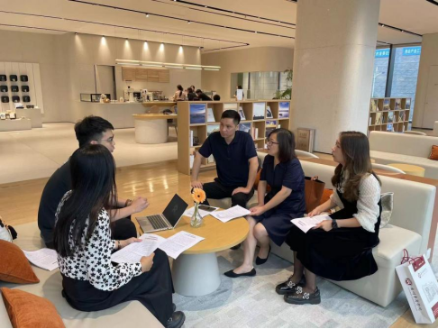 会谈结束后,在店长林伟龙的陪同下,管院一行还实地参观了公司直营店蔚来中心(广州汉溪长隆店)。