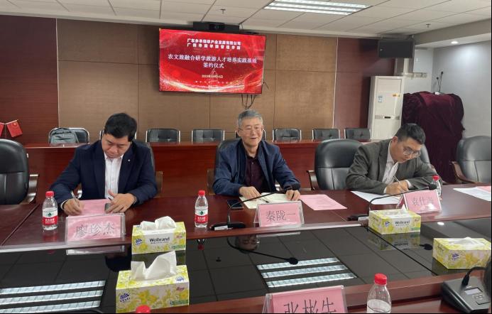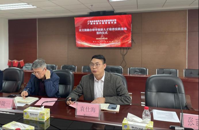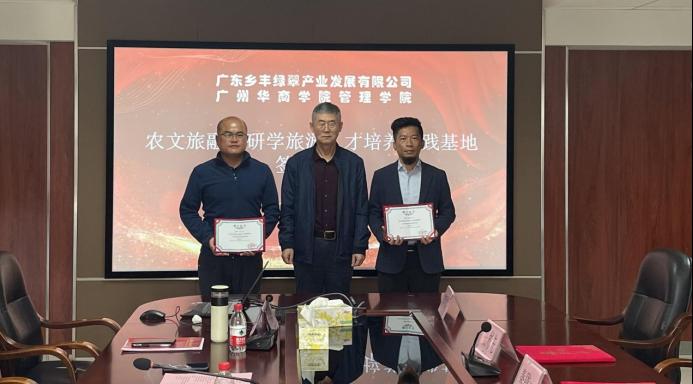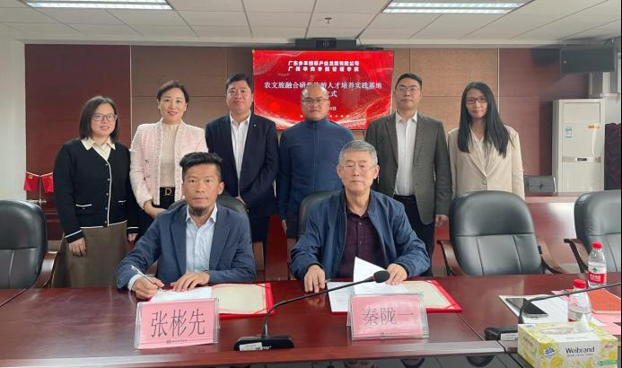 威廉希尔,威廉希尔中文网站,WilliamHill官网与广东乡丰绿翠产业发展有限公司于2023年11月15日10点在行政楼513举行了农文旅融合研学旅游人才培养实践基地签约仪式。出席人员主要有:广东乡丰绿翠产业发展有限公司园区执行总经理张彬先先生、园区研学基地总监董晓明先生、园区营销经理邱雯女士;威廉希尔中文网站副院长秦陇一教授、市场学系旅游管理专业负责人秦学教授、旅游管理专业教师杜伟副教授、院长助理袁仕海副教授、院长助理廖珍杰副教授、产教融合专员曾惠玲老师、市场学系副主任罗嘉欣老师。签约仪式由市场学系主任张丽娟副教授主持。
