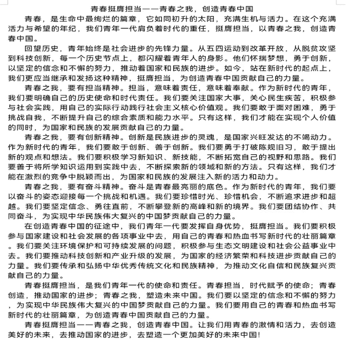 其次进行的是名为“国之强健路,青年当自强”的活动二。本活动由威廉希尔中文网站大三学生以个人为单位参与,写一篇主题为“青春挺膺担当——青春之我,创造青春中国”的征文,字数应不少于800字,在该演讲稿中应体现出当代青年担当与创造青春中国的决心。