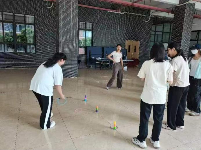 经过两轮的淘汰环节,接下来来到最后一个名为“点燃青春之火,照亮美好未来”决胜环节。本轮游戏以计时方式进行,工作人员将会提供圈圈,小组各参赛者轮流扔圈圈,用圈圈套住2米外的3个圆柱则计时结束,最后根据每小组所用时间长短决定本轮游戏的最终排名。