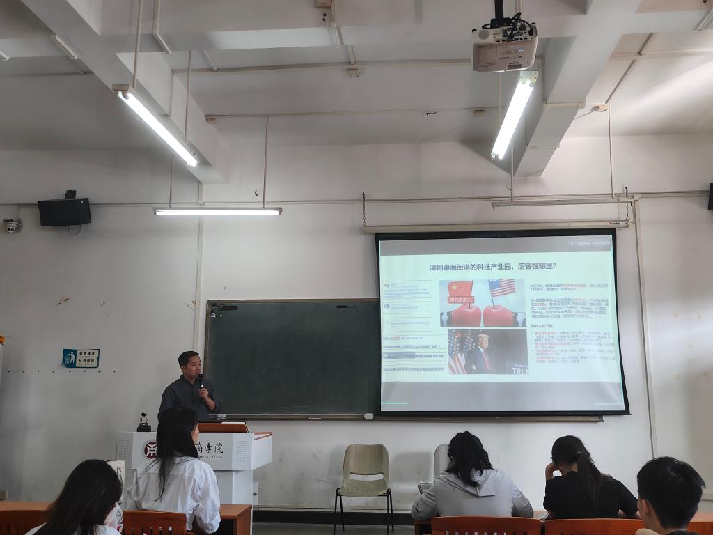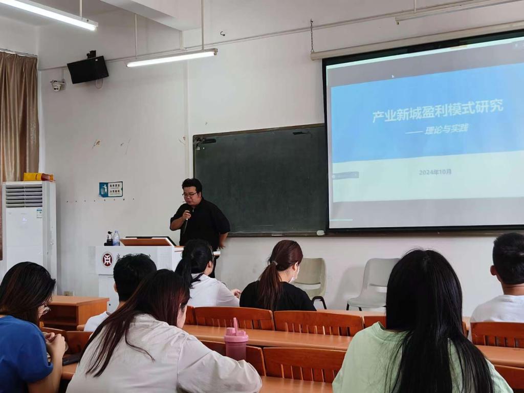丁骋伟副所长以产业新城商业模式的运营与实践为主题,以招商蛇口为例,深入探讨产业新城的发展轨迹,从其起源到现代演变,揭示产业新城背后的经济逻辑和发展趋势。首先,重点分析产业新城的开发思路与商业模式,探讨如何通过创新的规划和战略布局,实现产业集聚和城市可持续发展;其次,详细解读产业新城的运营机制和盈利模式,包括但不限于政策支持、资本运作和市场策略;为了使理论与实践相结合,丁副所长还以招商局蛇口工业区的产业新城为案例,具体分析其成功经验和面临的挑战。作为一名可持续发展的专家,丁副所长的发言分享不仅给同学们带来了一场知识盛宴,还给同学们打开了未来城市发展模式的洞察视角。