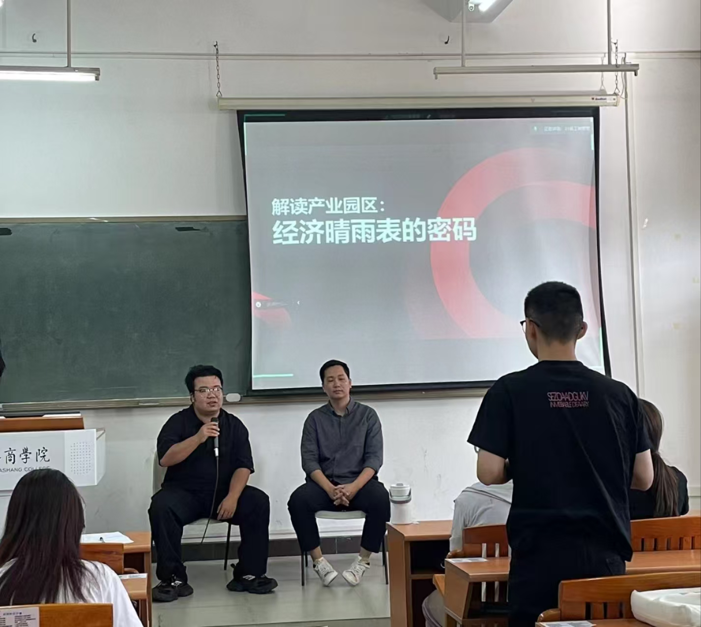 讲座的最后还组织了论坛问答环节,让华商管院学子们有机会与嘉宾进一步进行观点互换与交流,深入探讨“产业园区经济晴雨表密码”。两位嘉宾还就大学生“毕业就创业,如何结合产业园区的特点推广产品以达成交易合作”的情景引发学生思考,进行了相关话题的讨论和深入交流。