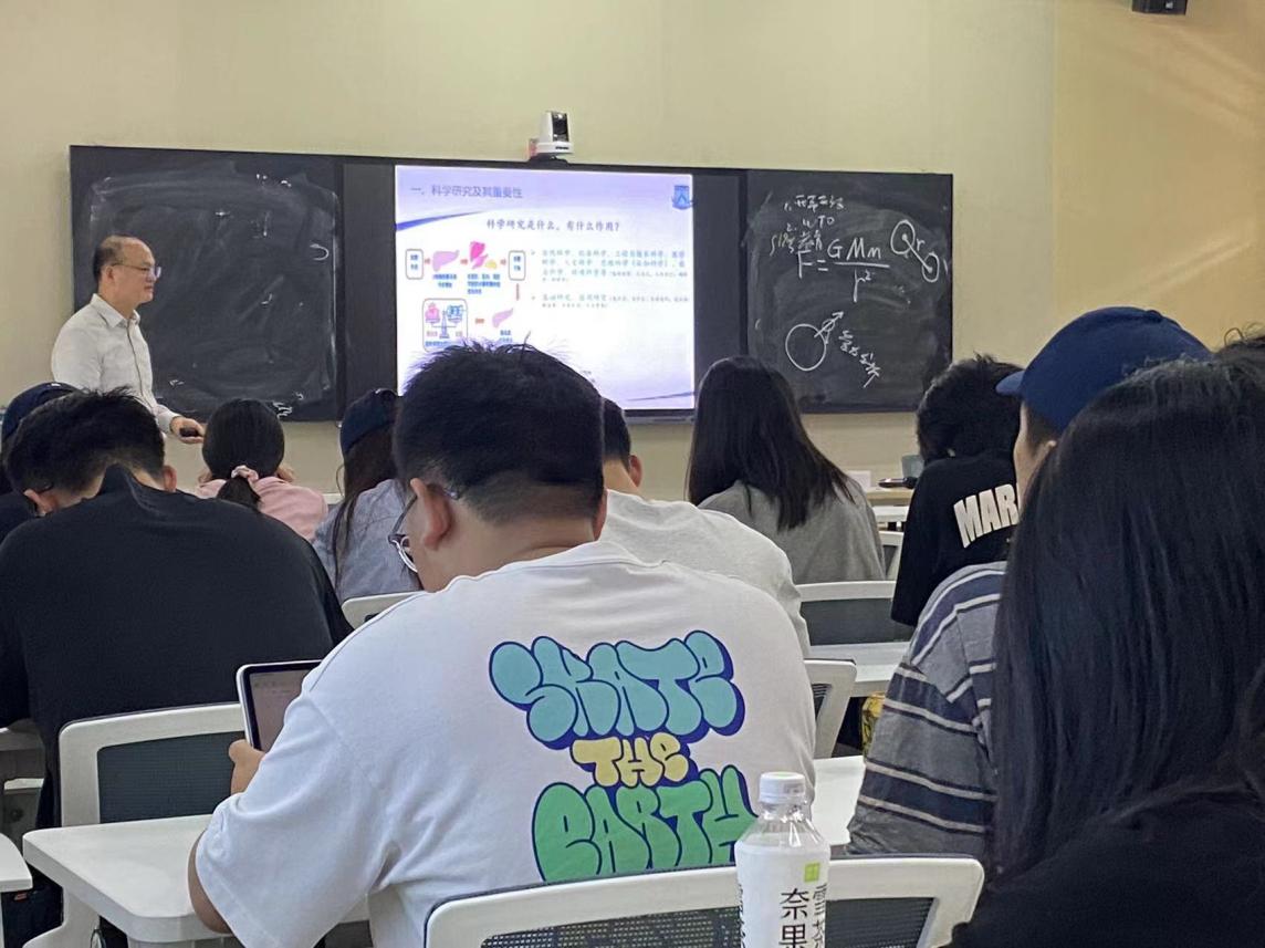 孙教授进一步以胰岛素、万有引力、人力资本为例子,生动解释了什么是基础研究和应用研究——是什么、为什么、怎么变化、怎么办,软科学与硬科学又是如何区分,通过这类基本问题的提出引发同学思考,鼓励同学们成为真正的人才,成为科学研究的人才。