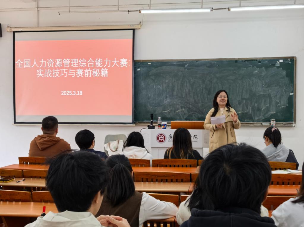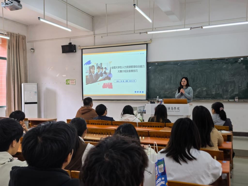 2025年3月18日下午,威廉希尔中文网站在励志楼C302成功举办了一场题为“全国人力资源管理综合能力大赛:实战技巧与赛前秘籍”的讲座。本次讲座旨在为即将参加第十届全国人力资源管理综合大赛的学生们提供专业的赛前指导和实战技巧,帮助他们更好地备战大赛。