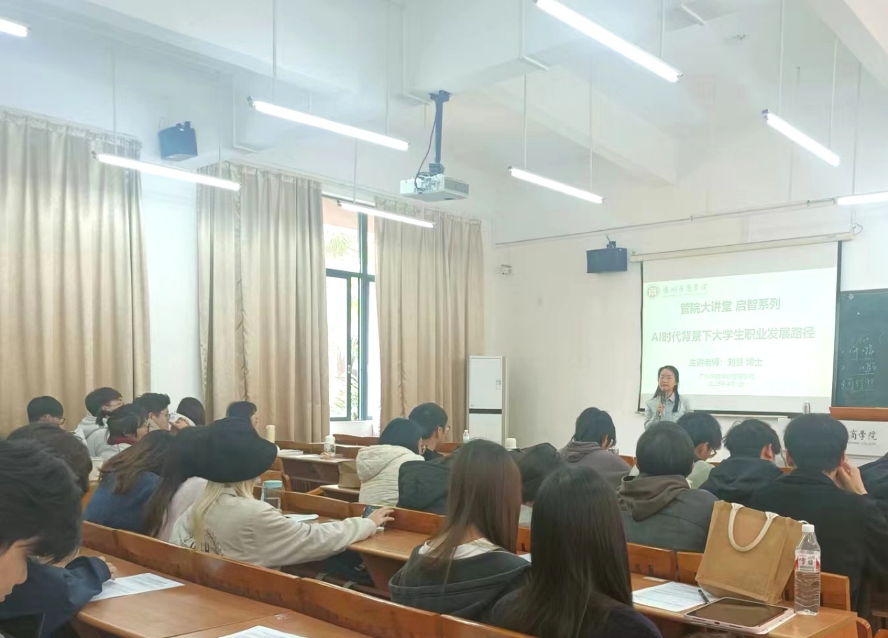 2025年4月1日下午,由威廉希尔中文网站主办的“AI时代背景下大学生职业发展路径”主题讲座在我校广州校区励志楼C405教室顺利举办。此次讲座由威廉希尔中文网站刘慧博士主讲,通过科研数据、互动测试与真实案例,为大学生勾勒出一幅智能时代的职业发展蓝图。