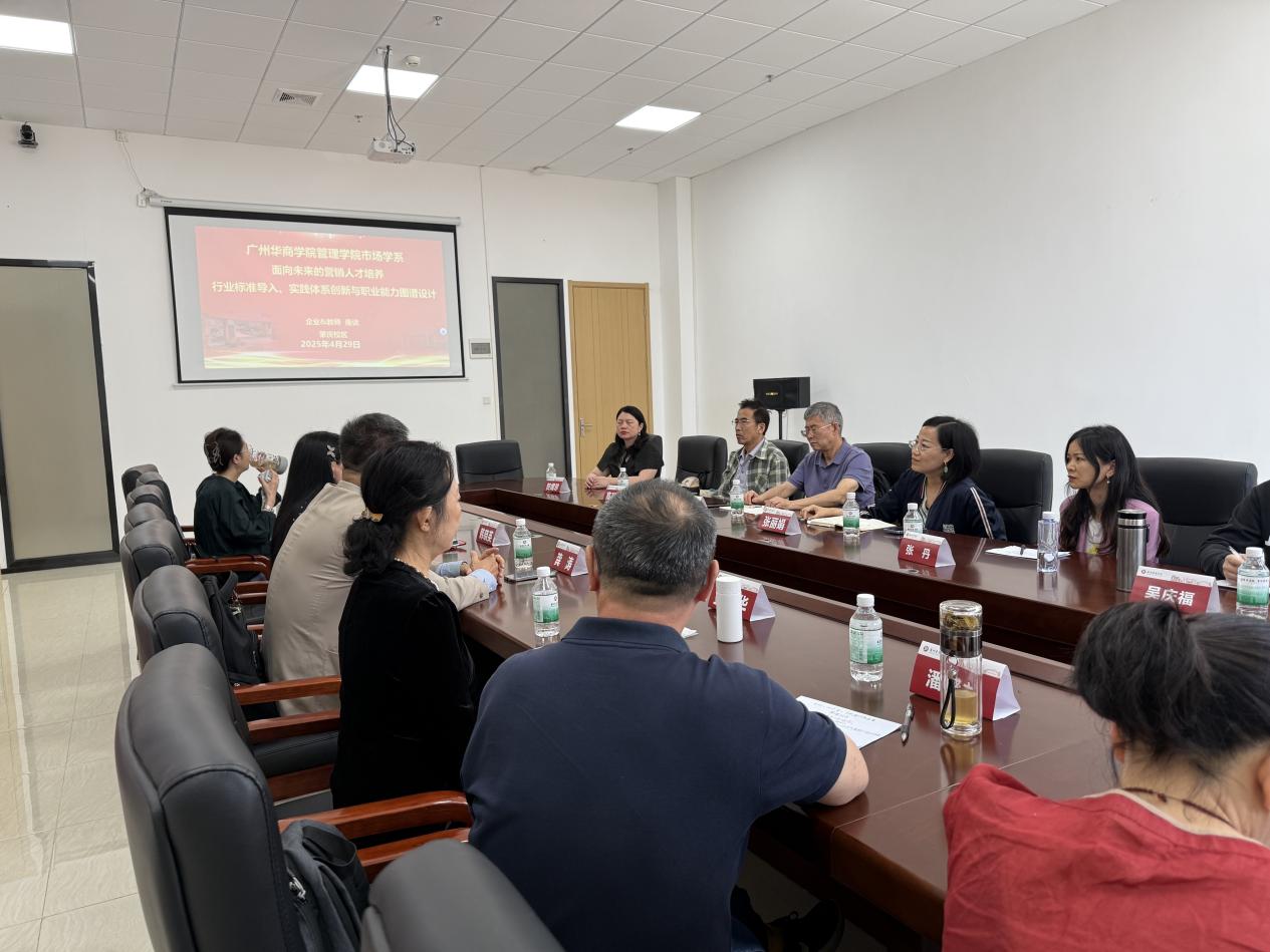 2025年4月29日上午,威廉希尔中文网站教学督导组秦陇一教授、威廉希尔中文网站教学秘书梁林海、威廉希尔中文网站市场学系主任张丽娟、副主任马航通,市场学系金明华教授、高环成教授、潘盛之教授、吴庆福副教授、贺嫦珍副教授、任欣鹭博士、张俊、张丹等一行12人前往威廉希尔中文网站肇庆校区,出席威廉希尔,威廉希尔中文网站,WilliamHill官网市场学系期中教师座谈会暨《面向未来的营销人才培养——行业标准导入、实践体系创新与职业能力图谱设计:企业&教师座谈会》。本次座谈会邀请了明美新能源集团韩晓英博士和拥有外企30余年工作经验的龚涛博士两位行业经验丰富的嘉宾,分享他们在新能源、快销品等领域的实践经验,为在场的教师们提供行业洞察。