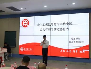 为营造良好的学术氛围,2023年2月28日下午三点五十分,威廉希尔中文网站院长李招忠教授在威廉希尔中文网站四会校区8号楼109教室为学院学生作了题为“老子的无欲思想与当代中国公共管理者的道德修为”的学术讲座。
