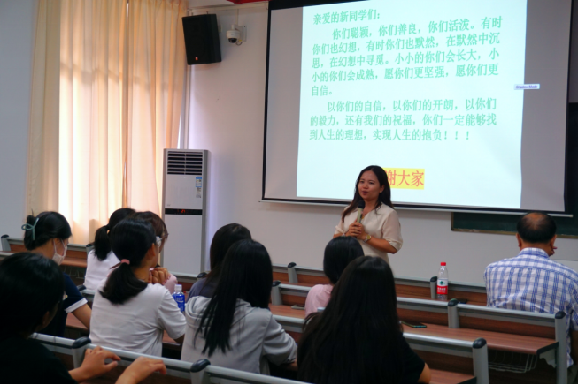 在袁老师生动有趣的讲述下,同学们对人力资源管理这一专业所学知识和相关就业前景有了一定了解。接下来,张干英副教授用亲身经历告诉同学们环境对人发展的深刻影响,并以自身经历劝诫同学们要在大学期间努力读书,勇于攀登,成为更好的自己。
