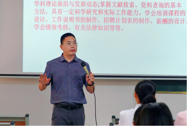讲座开始前,同学们以热烈的掌声欢迎张干英副教授、袁仕海副教授、刘江泳老师的到来。会议伊始,袁仕海副教授以生动的语言向同学们讲述了人力资源管理专业的相关概念及要求,并指出目前人力资源管理专业依旧是一个专业性较强的学科,具有一定的不可替代性,同时人力资源管理专业培养的是应用型人才,此类人才在市场上仍有较大缺口,因此人力资源管理专业在未来仍具有远大前景。随后,袁老师介绍了目前华商集团与用友公司接洽BIG工程师相关证件考核事宜,这一证件的落实有利于人力资源管理专业的同学就业。