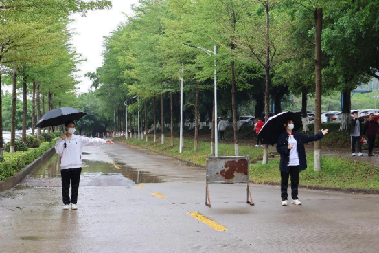 校园的各个角落都有志愿者坚守岗位,他们在每个路口为同学们做指引,耐心地解答同学们的问题,他们不辞辛劳的身影,在校园里形成了一道亮丽的风景线。