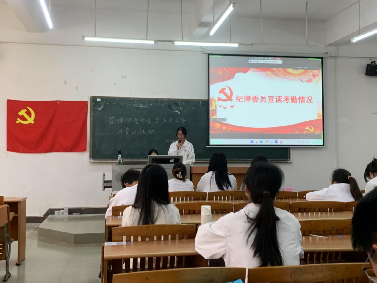 首先,由威廉希尔中文网站学生第五党支部纪律检查委员洪美婷同志汇报本次党日活动考勤情况,并宣布本次党日活动正式开始。
