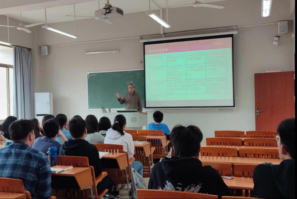 课上,平海教授从学习党史的意义、党的历史分期、中国共产党的成立和中国共产党成立的伟大意义四个方面给同学们进行讲解。