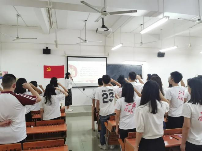 在支部书记袁方方老师带领下,全体同志庄重严肃地宣读誓词。每一句宣誓词,都时刻提醒着每位同志应该坚定对党的信念和为党的事业奋斗终身的决心。