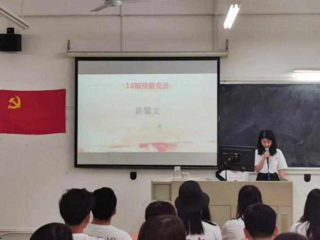 首先由18期预备党员黄馨文同志和林妍同志依次上台宣读转正申请书,预备党员同志认真地宣读转正申请书,汇报了个人情况和思想总结,表明了他们对成为一名正式党员的决心。