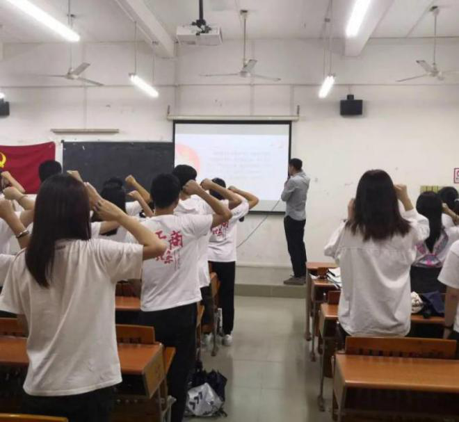 在支部书记李鑫老师带领下,全体同志庄重严肃地宣读誓词。每一句宣誓词,都时刻提醒着每位同志应该坚定对党的信念和为党的事业奋斗终身的决心。