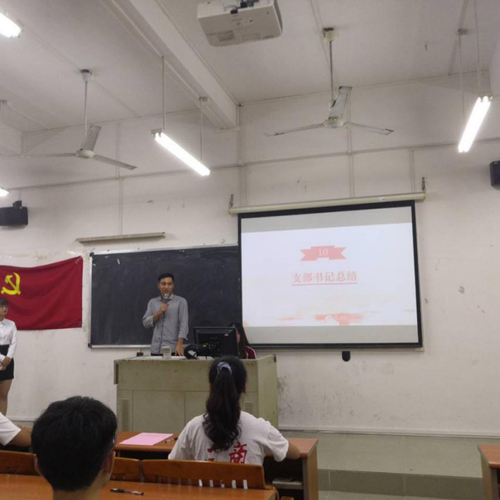 大会最后一项议程,支部书记李鑫老师总结发言。首先,李鑫老师对如期转正的党员同志表示由衷的祝贺,紧接着对我系学生党支部的相关活动开展以及各项工作的展开都提出了宝贵的建议,并对我系学生党支部未来发展寄予厚望。