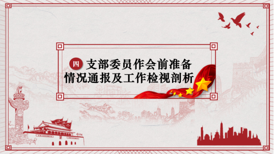 最后,江思书记进行总结发言,她对支部过去一年来所做出的努力和取得的成绩表示了肯定,对今年的工作和安排提出了宝贵的建议。她指出,同志们要继续传承优秀工作作风,相互监督,在做批评和自我批评时不能浮于表面,学习反思,要深刻剖析具体问题。她希望大家在以后的学习工作中继续坚定理想信念,增强党性观念,行动上严格要求自己,全心全意为人民服务,切实发挥党员的先锋模范作用!