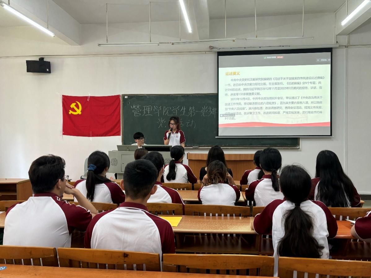 此次党日活动还根据主题内容提出了案例一“违反民主集中制原则擅自决策的案件”和案例二“村委会主任曹某某违规发展党员问题”。同学们结合实际,围绕违反中央八项规定精神的问题展开热烈探讨。案例一中,某县委书记张某未征求其他常委意见和集体民主决策,直接指示有关部门对县委门前地区进行拆迁,修建大型广场及仿古牌坊,耗资巨大且造成交通拥堵,严重违背了民主集中制原则,是典型的形式主义与官僚主义表现。案例二中,河南省新乡市封丘县王村乡刘王村党支部书记、村委会主任曹某某违规发展党员,无视组织程序与纪律要求,严重违反党的政治纪律与组织纪律,破坏了党的先进性与纯洁性。同学们通过分析这两个案例,深刻认识到不良作风的危害性,明确作为新时代大学生党员,要时刻自省自查,避免此类问题。