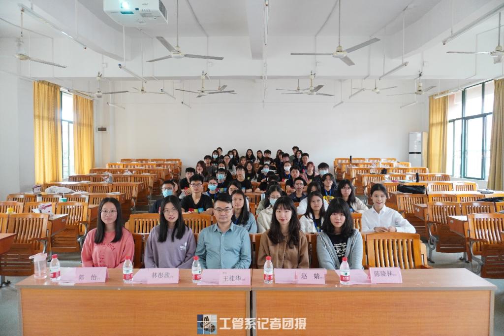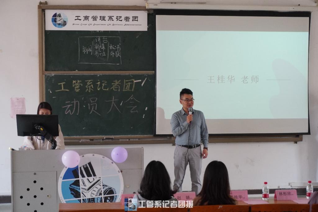 本次大会到场的嘉宾分别是:工商管理系记者团指导老师王桂华老师,工管系记者团正团长林彤欣,副团长陈晓林、郭怡和赵婧。