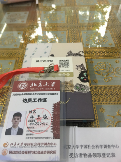 大三暑假我参加北京大学中国社会科学调查中心民政部社会福利与社会进步研究所的社会调查项目,其中该项目全国报名人数3000+,最终录取访员人数仅354人。我前期通过该项目的培训并获得培训证明,工作期间担任汕头市潮阳区社区治理项目组长,访问量在广东省访员中排名前三,并最终获得实习证明。