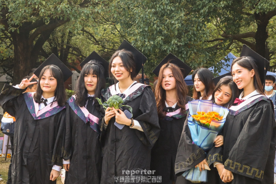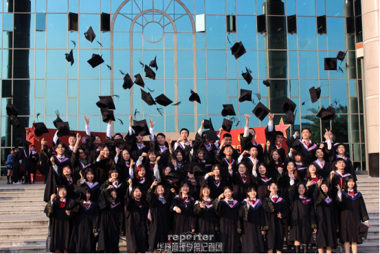 中央图书馆的广场上驻足着许许多多正在合影的毕业生们,各种搞怪的姿势,各种拍照的道具,他们用自己的方式记录着这所学校,用自己的方式表达着对学校、对老师、对同学的留恋。