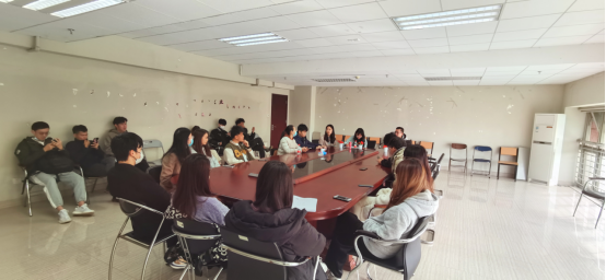 (图为江思老师与集团负责人、学生进行座谈)
