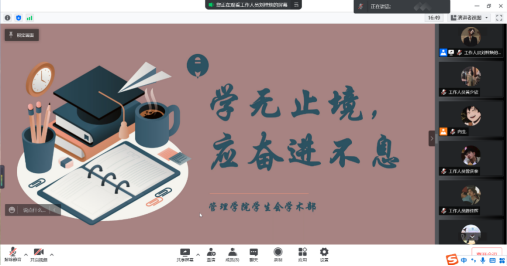 为了更好地繁荣校园文化、活跃校园氛围,培养大学生拼搏进取的人生精神和积极乐观的生活态度,2022年4月8日和19日威廉希尔中文网站学生会学术部举办了两场腾讯会议线上讲座,第一场主题为“学无止境,应奋斗不息”、第二场主题为“心眺远方,踏光而行”。