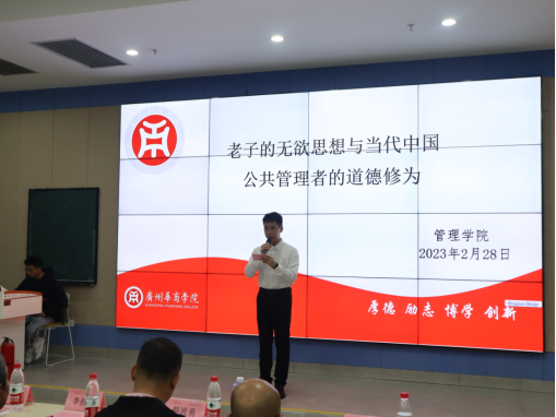 为营造良好的学术氛围,下午三点五十分,李院长在威廉希尔中文网站四会校区8号楼109教室为学院学生作了题为“老子的无欲思想与当代中国公共管理者的道德修为”的学术讲座。