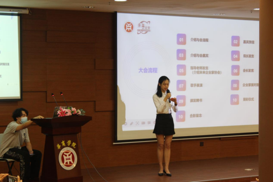 未来企业家沙龙指导老师徐煜忻就沙龙简介、机构设置、职能介绍、发展计划以及发展目标五个方面作了介绍。希望通过创办沙龙积极凝聚企业、校友各方力量,发挥校友集体智慧,整合校友优势资源,实现“学院+企业+沙龙”互助共赢友好合作。