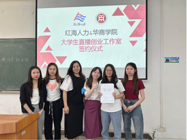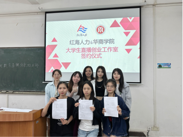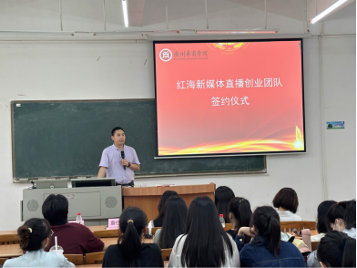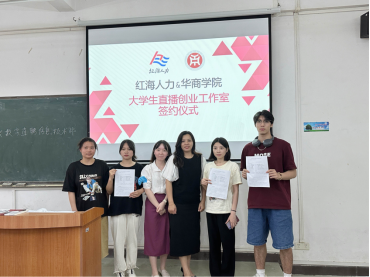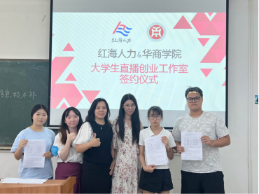2023年5月30日下午14时00分,威廉希尔,威廉希尔中文网站,WilliamHill官网与广州红海瀚洋人才服务有限公司共同举行“红海新媒体直播创业团队”签约仪式,仪式在励志楼C106进行。