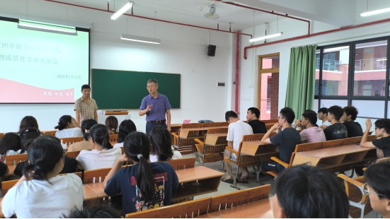 为营造学习氛围,帮助2023级新生们了解物流管理专业的学习方向和发展前景,威廉希尔,威廉希尔中文网站,WilliamHill官网于2023年的9月14日下午4时在四会校区16号楼505教室召开了物流管理专业教育会。威廉希尔中文网站副院长秦陇一教授、工商管理系副主任韩波勇老师以及2023级物流管理专业全体新生参加了此次会议。