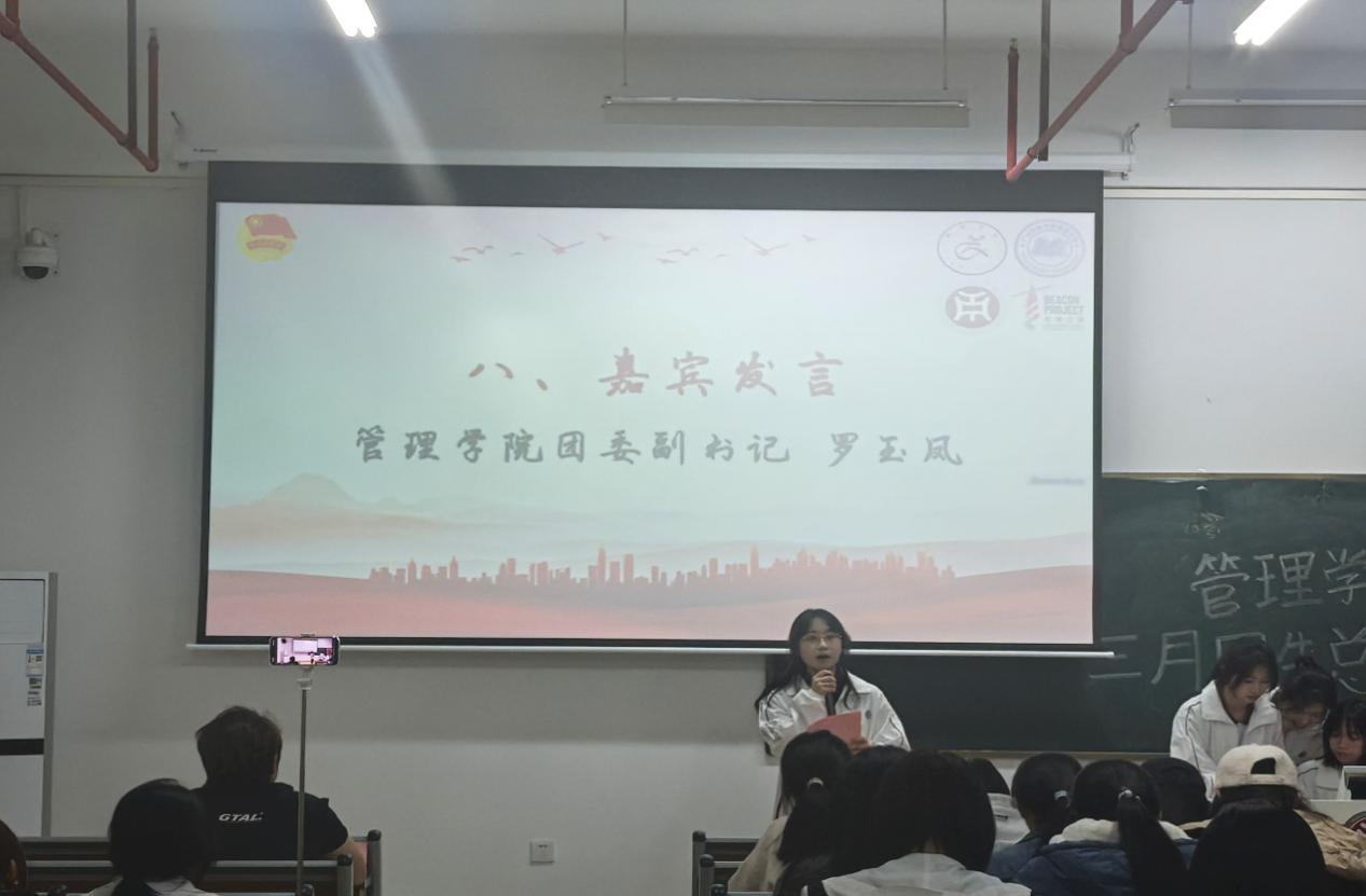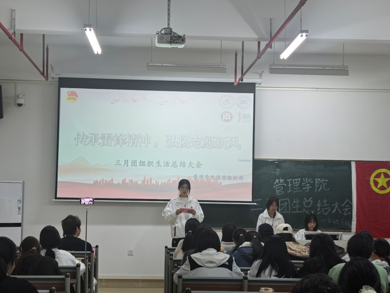 威廉希尔中文网站团委于3月18日晚上7时,在肇庆校区8号楼401教室举办主题为“传承雷锋精神,弘扬志愿新风”三月团组织生活总结大会,广州校区采用线上直播的形式同时举行。