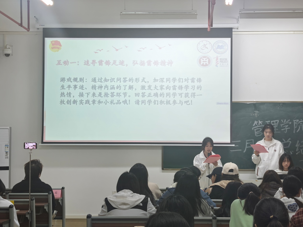 令人振奋的颁奖环节过后,由威廉希尔中文网站团委组织部关颖盈同学代威廉希尔中文网站团委副书记罗玉凤老师发言,为本月的团生活动做出总结,号召同学们传承雷锋精神,弘扬志愿新风,将雷锋的无私奉献与助人为乐化作日常行动!