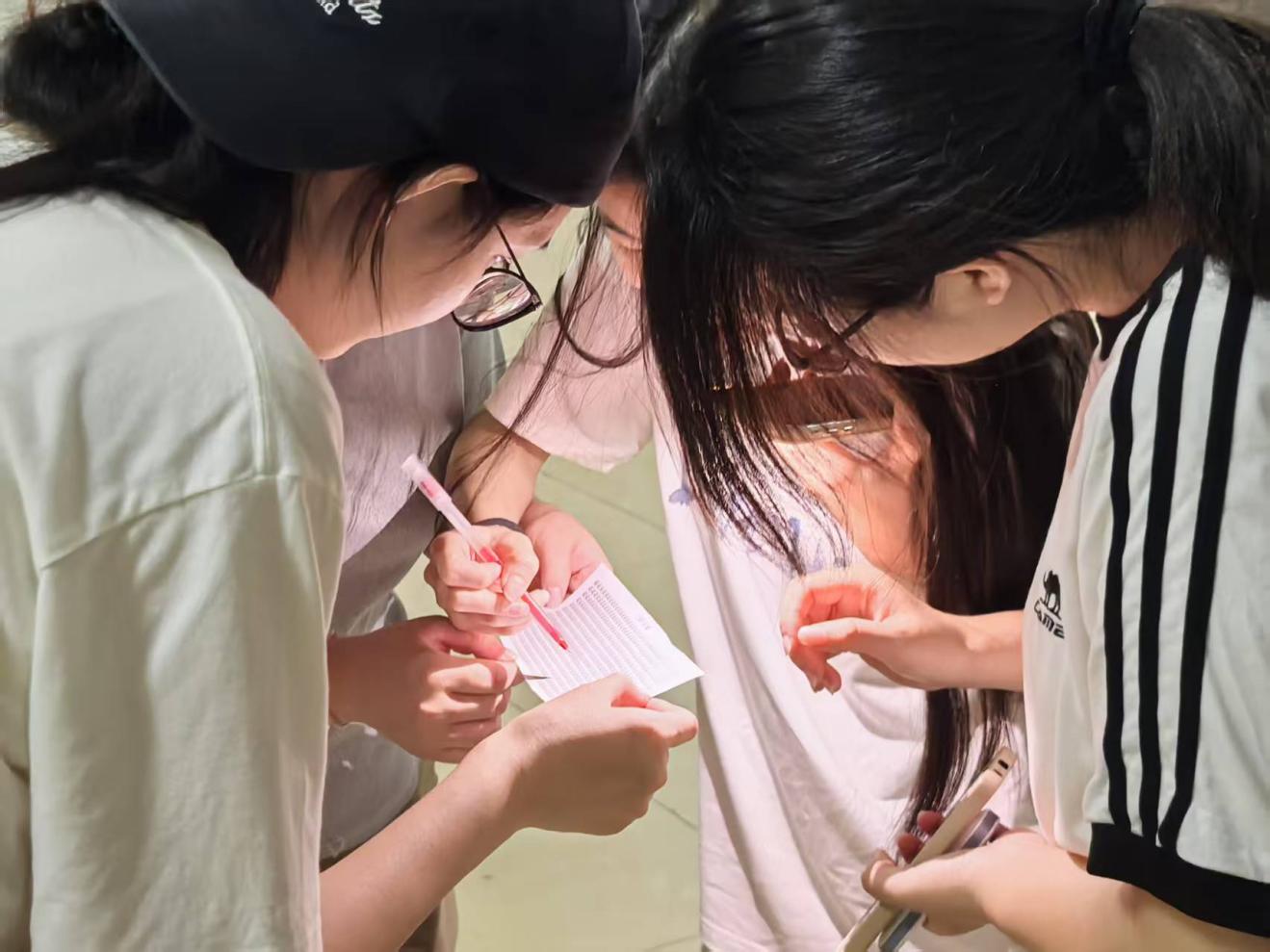 经过两轮激烈的淘汰赛,胜出的参赛者们终于来到了以“文明纪律寻差异,细节之处见真章”为主题的环节三。该活动共进行三轮比拼。每轮开始前,工作人员为每小组发放了一张印有众多相同字的纸。游戏开始,工作人员同步按下计时器,各小组迅速专注于从纸上找出三个与其他字不一样的字。他们低头凝视,逐行排查,互相协作。一旦找出三个不同的字,便立即示意工作人员,此时该小组计时结束。