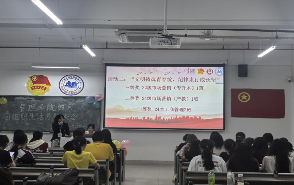 在“文明铸魂青春绽,纪律束行成长坚”的活动中,荣获一等奖的班级为24级工商管理2班、荣获二等奖的班级为24级市场营销(产教)1班、荣获三等奖的班级为22级市场营销(专升本)1班 。
