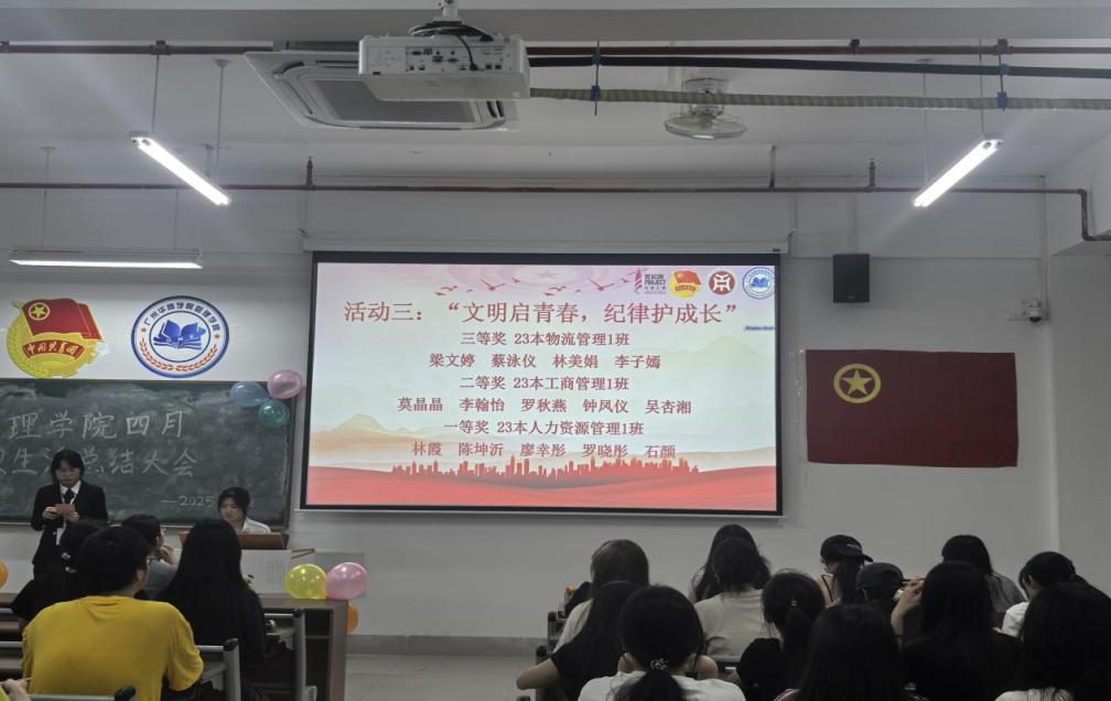在“文明启青春,纪律护成长”的活动中,荣获一等奖的同学是23级人力资源管理1班陈坤沂、廖幸彤、林霞、罗晓彤、石颜,荣获二等奖的同学是23级工商管理1班罗秋燕、钟凤仪、吴杏湘、莫晶晶、李翰怡,荣获三等奖的同学是23级物流管理1班梁文婷、蔡泳仪、林美娟、李子嫣。