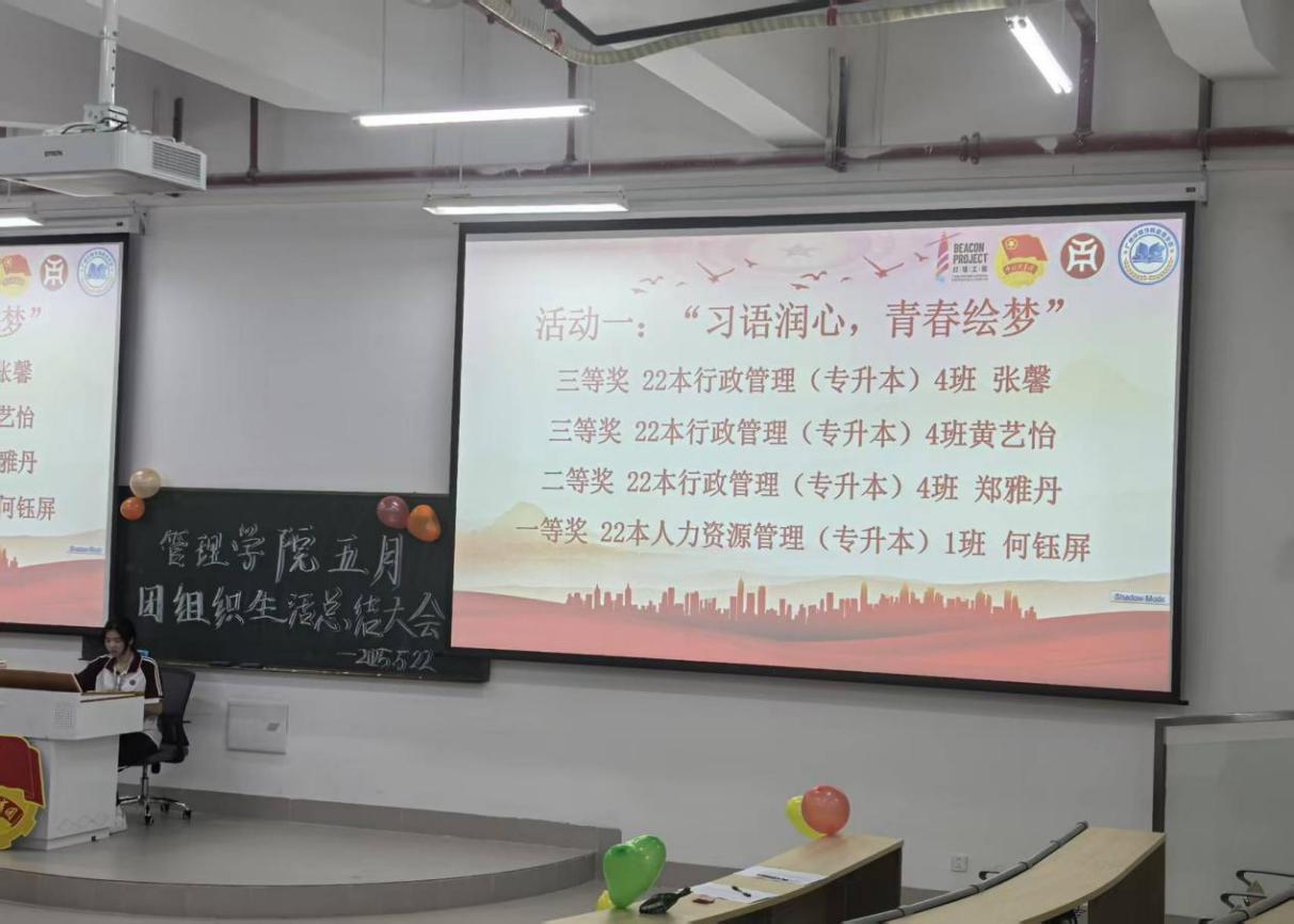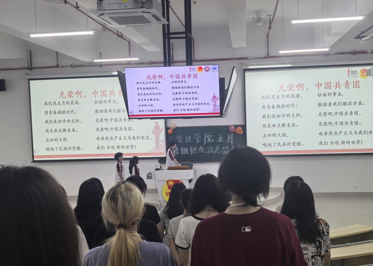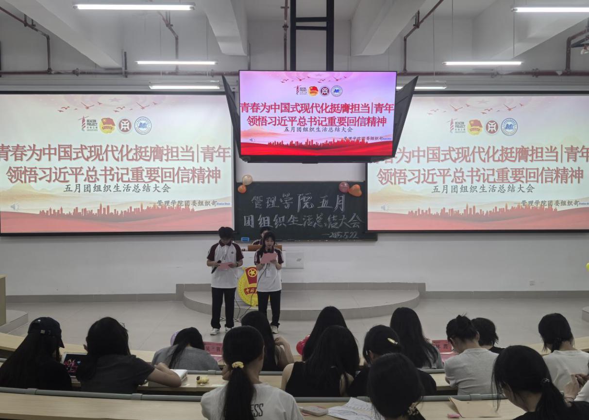 威廉希尔中文网站团委于5月22日晚上7时,在肇庆校区16号楼212教室举办主题为“青春为中国式现代化挺膺担当|青年领悟习近平总书记重要回信精神”五月团组织生活总结大会,广州校区采用线上直播的形式同时举行。