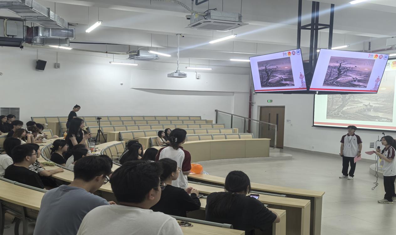 紧接着,大会来到了新鲜又好玩的互动游戏“看图片猜诗句”,通过观察画面细节和联想诗词意境,激发对古典文学与自然意象的感悟。现场讨论热烈,同学们在思辨的氛围中重温了诗词魅力。