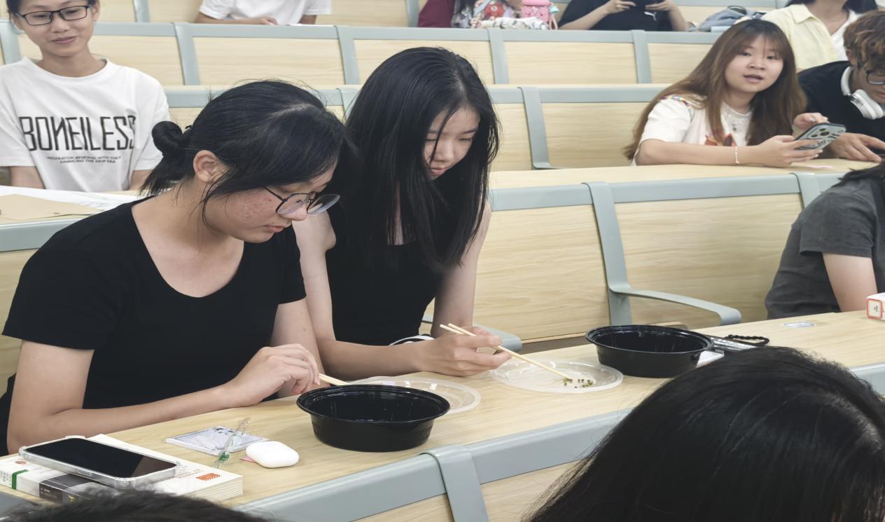 然后是我们的游戏二“夹绿豆”,通过夹绿豆挑战和团队接力竞赛,展现对手眼协调与耐心专注的把控。现场掌声此起彼伏,同学们在紧张又欢乐的氛围中强化了协作意识。