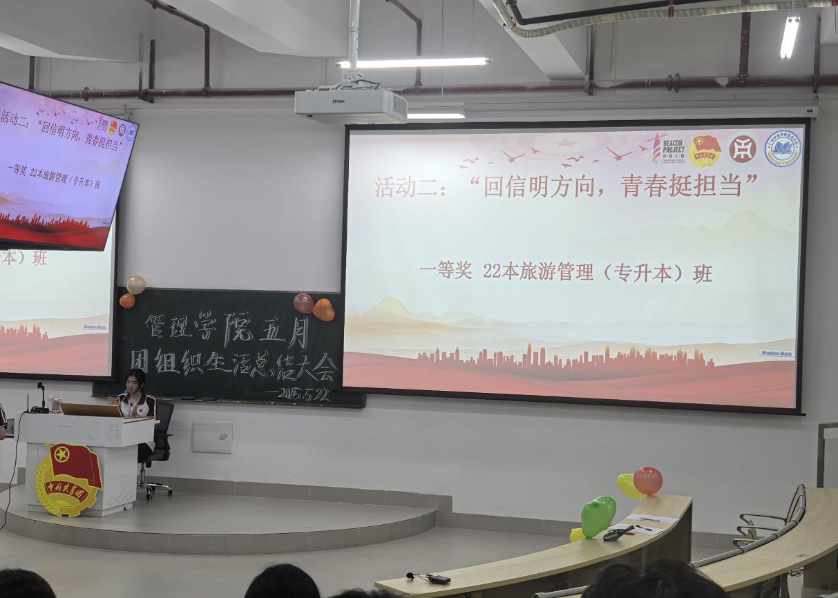 在活动二“回信明方向,青春挺担当”活动中荣获一等奖的是22本旅游管理(专升本)班。