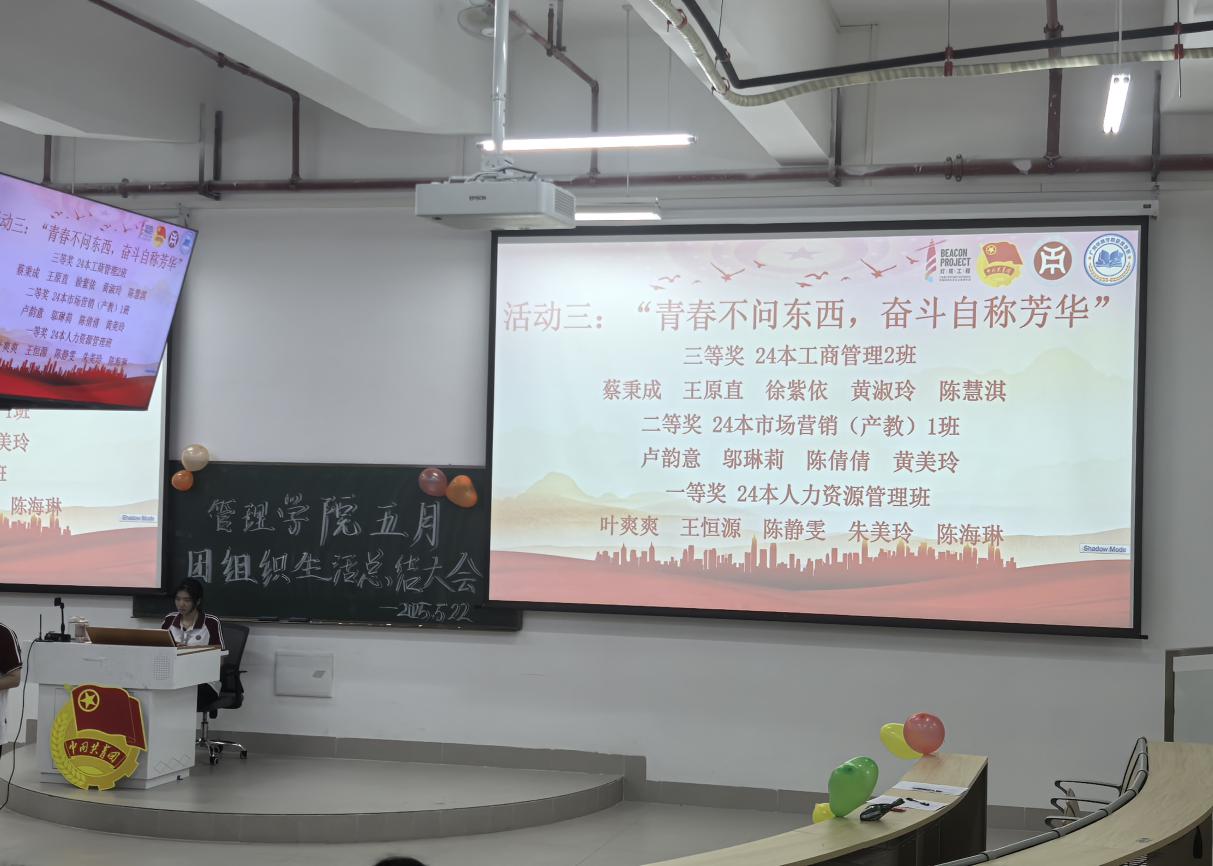 在活动三“青春不问东西,奋斗自称芳华”线下团生活动中荣获三等奖的同学是24本工商管理2班蔡秉成、王原直、徐紫依、黄淑玲、陈慧淇;荣获二等奖的同学是24本市场营销产教1班卢韵意、邬琳莉、陈倩倩、黄美玲;荣获一等奖的是24本人力资源管理班叶爽爽、王恒源、陈静雯、朱美玲、陈海琳。