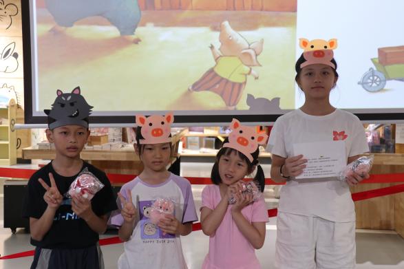 志愿者以动画主题曲《猪猪侠》暖场,通过欢快旋律迅速拉近与儿童的距离,营造轻松愉悦的阅读氛围。接着,主讲人生动演绎《三只小猪》情节,从“独立建屋”的成长选择到“智斗大灰狼”的危机应对,引导儿童思考“勤劳造就坚固”“智慧战胜困难”等道理。互动环节中,孩子们踊跃分享感悟,一同领悟“做事要脚踏实地”的道理。