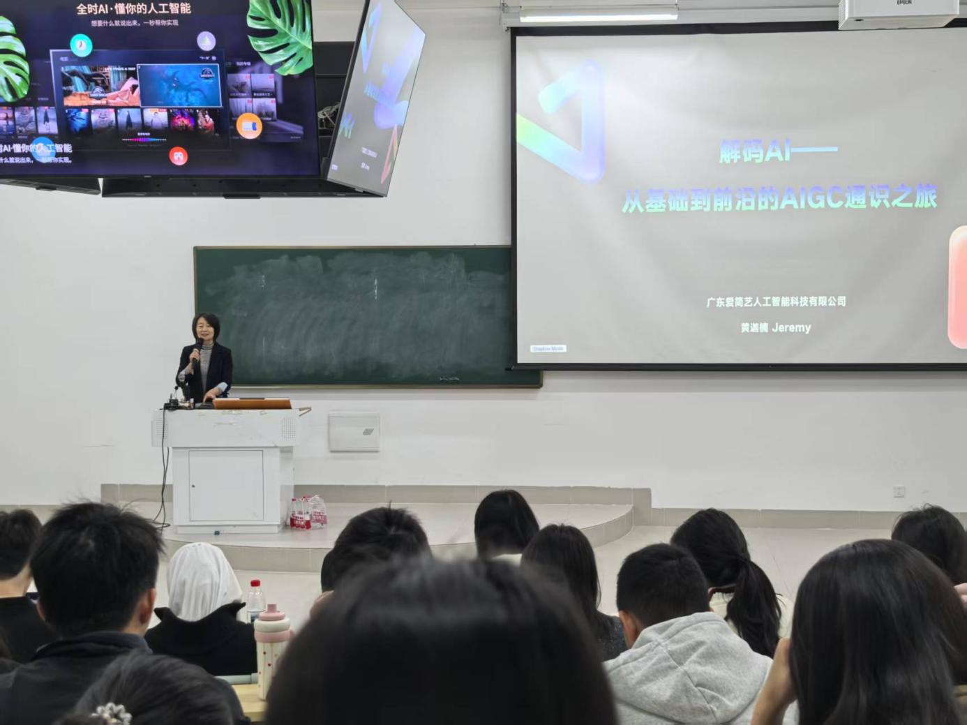 2025年3月18日下午,威廉希尔中文网站在肇庆校区16号212教室成功召开了“从AI小白到未来人才:重构你的创新力与就业力行动指南”主题讲座。讲座由公共管理系副主任张秀丽主持,广东爱简艺人工智能科技有限公司联合创始人黄迦楠主讲,双创秘书王梓辰等教师出席。讲座围绕AIGC技术前沿、产业革新、伦理治理及跨领域应用等展开深度解析,现场150余名师生积极参与。